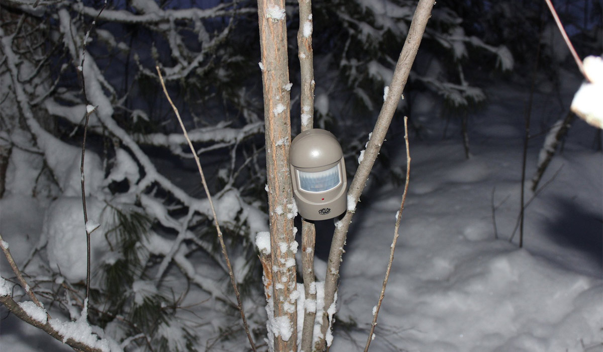 На ночь устанавливал два датчика так, чтобы они охватывали всю площадь лагеря с переда и тыла, а базу – в палатке на режим «тихое оповещение». Также имеется режим отпугивания: когда база устанавливается на улице и включается громкая сирена.