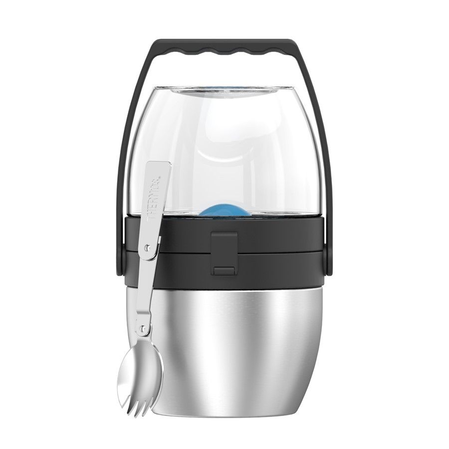 В комплект входит складная ложка-вилка из пищевой нержавеющей стали, для которой в одной из крышек предусмотрена специальная ниша для хранения.