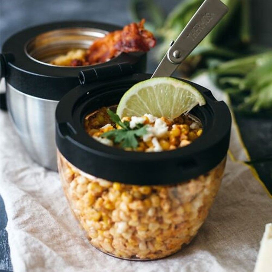 Оба контейнера закрываются герметичными крышками, имеющими поворотные указатели. Винтовая крышка-пробка ёмкости с вакуумной изоляцией оснащена клапаном сброса давления для облегчения открывания термоса с горячим содержимым.